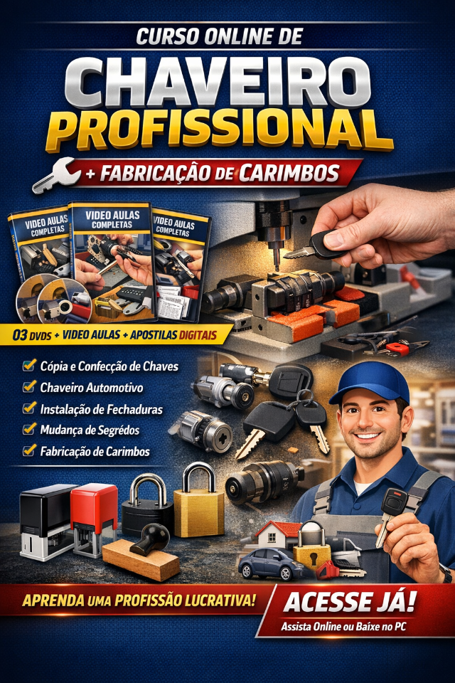CURSO ONLINE DE CHAVEIRO PROFISSIONAL FABRICAÇÃO DE CARIMBOS