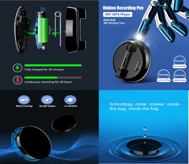 BOTÃO GRAVADOR ESPIÃO 8GB